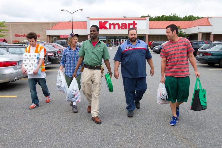Nick (Nick Swardson), Marcus Higgins (David Spade), Kurt McKenzi (Chris Rock), Eric Lamonsoff (Kevin James), and Lenny Feder (Adam Sandler) at Kmart in Columbia Pictures’ GROWN UPS 2.