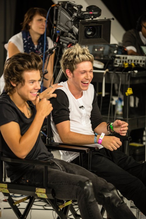 LONDON, ENGLAND – AUGUST 19: (L-R) Liam Payne and Niall Horan behind the scenes at the photo call and press conference for “One Direction This Is Us” at Big Sky Studios on August 19, 2013 in London, England. Photo by Cal Auran